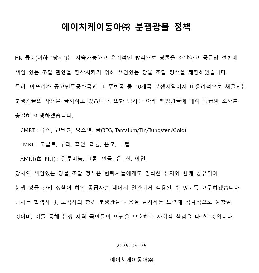 광물 조달 정책은 협력사들에게도 명확한 취지와 함께 공유되어,